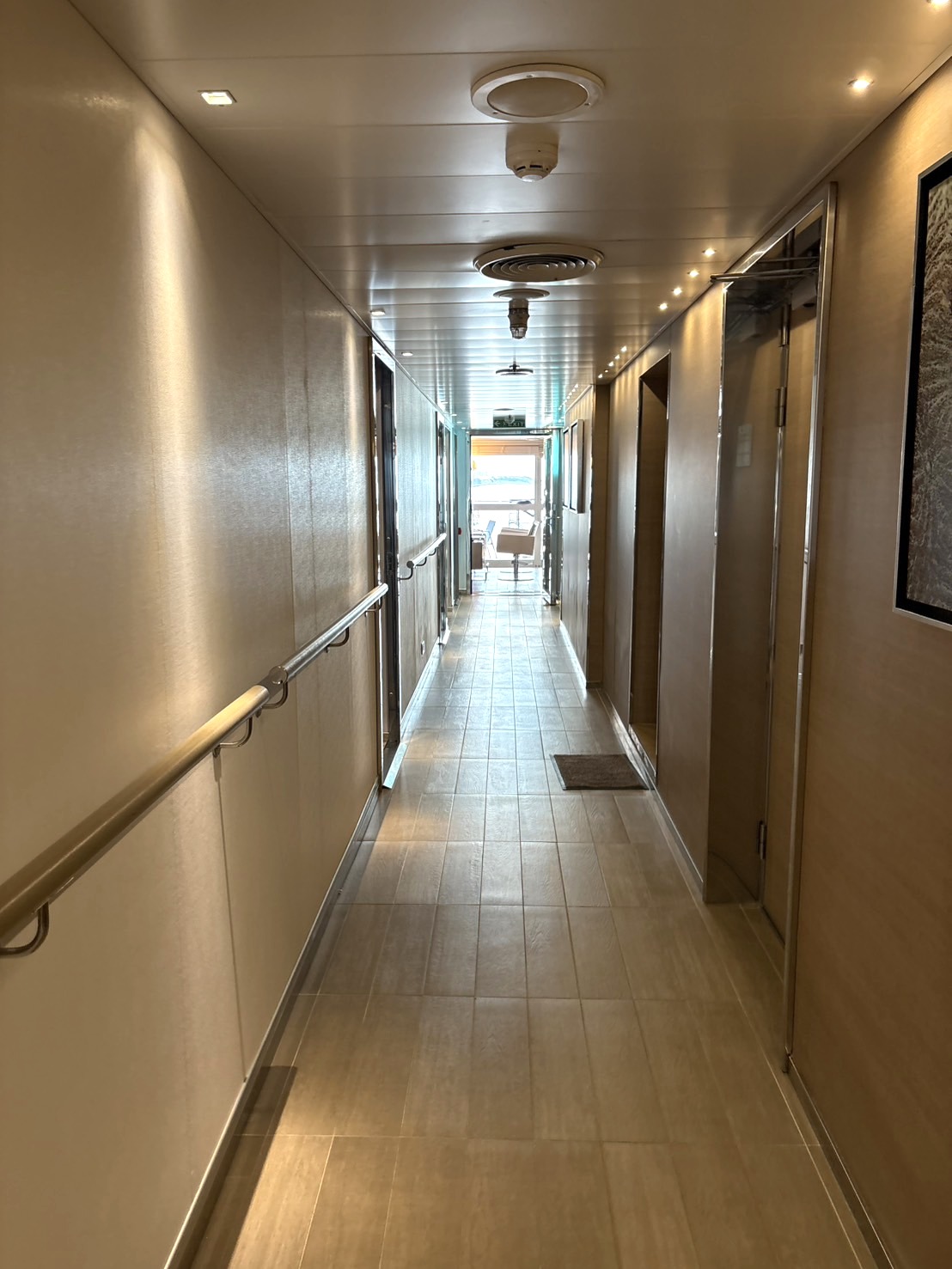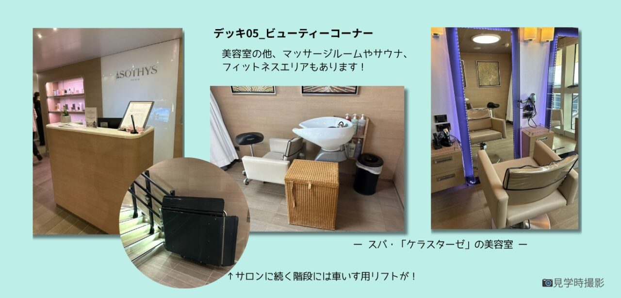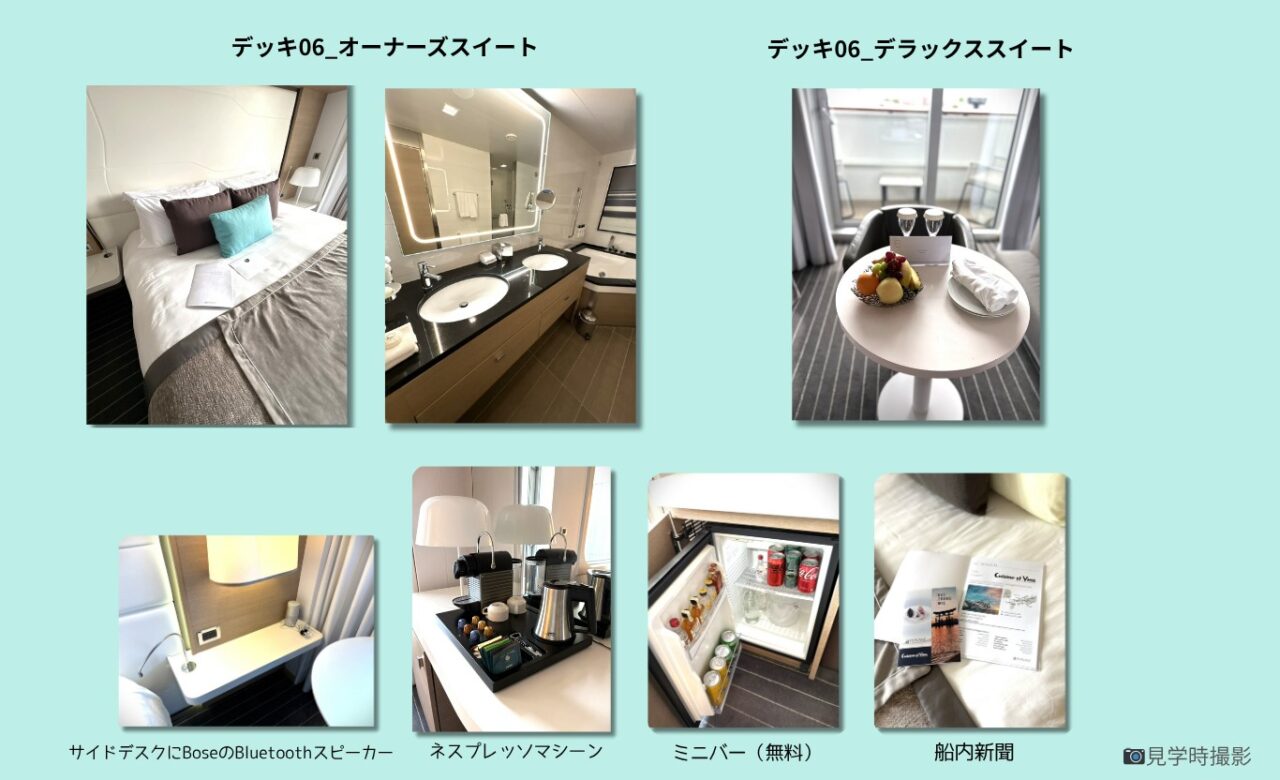 見学は短い時間でしたが、落ち着いた雰囲気のインテリアや、コンパクトながらも洗練された空間が印象的でした。スタッフの方々もとても丁寧で、穏やかな船旅の様子がうかがえました。